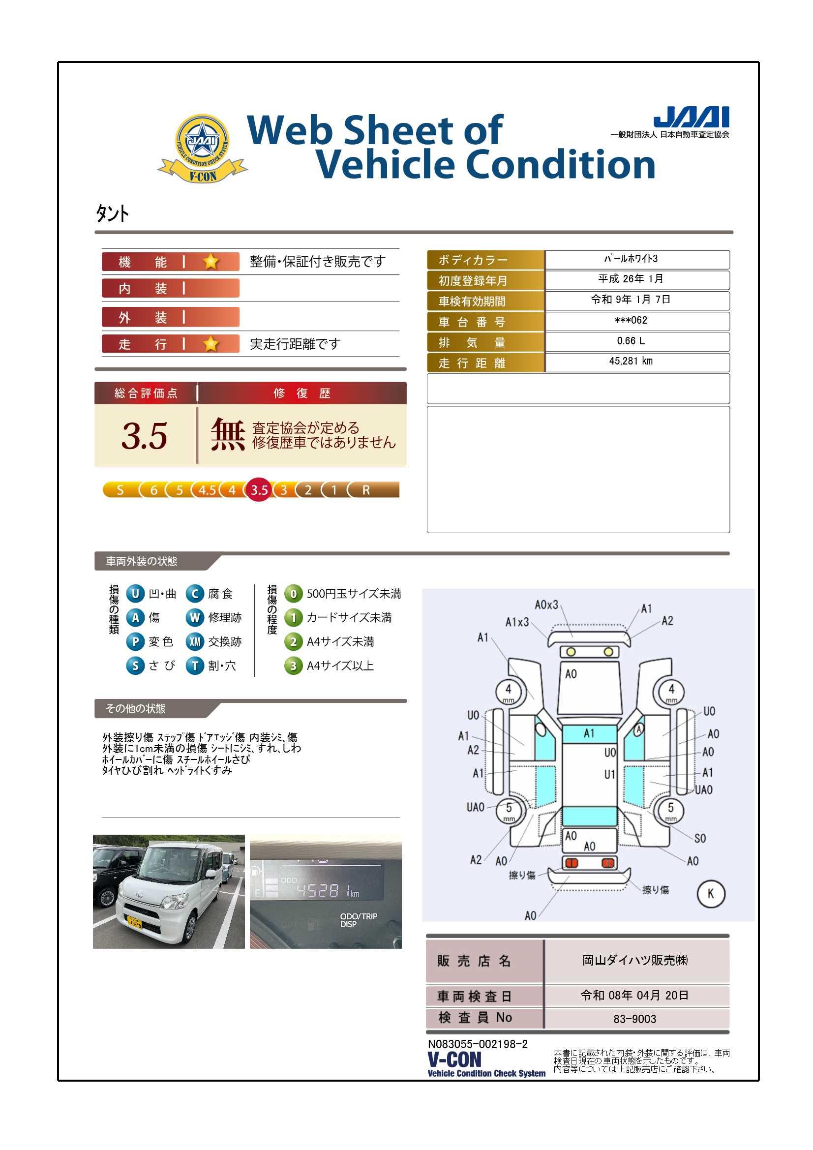 ダイハツ認定中古車は、「車両状態証明書」「約60項目の徹底点検・整備」「内装の徹底清掃と洗浄」「1年間無償保証(車両本体価格30万円以下の車両は3ヶ月または3000kmの保証)」が全車に付いています。