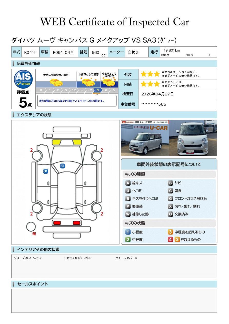 車両状態証明書が付いておりますので、安心してお選び出来ます。詳しくは、スタッフまでお気軽にお問合せください。