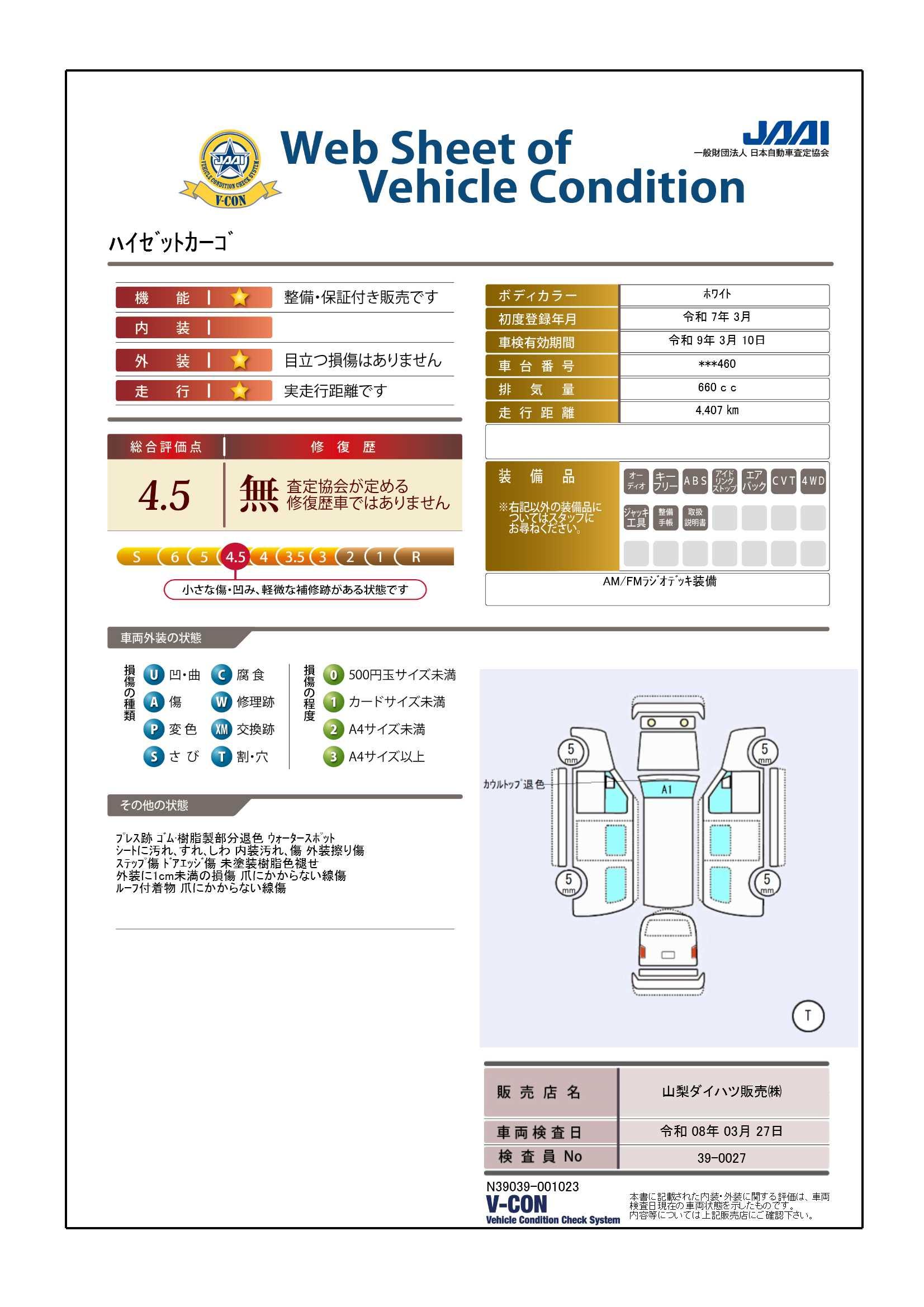 右前からの画像です。当社の販売する車輌には全て車輌状態証明書をお付けしています。状態の良いお車でも洗車傷など、無傷ではありません。状態証明はその部分も含めた表記となっております。予めご承知おき下さい。